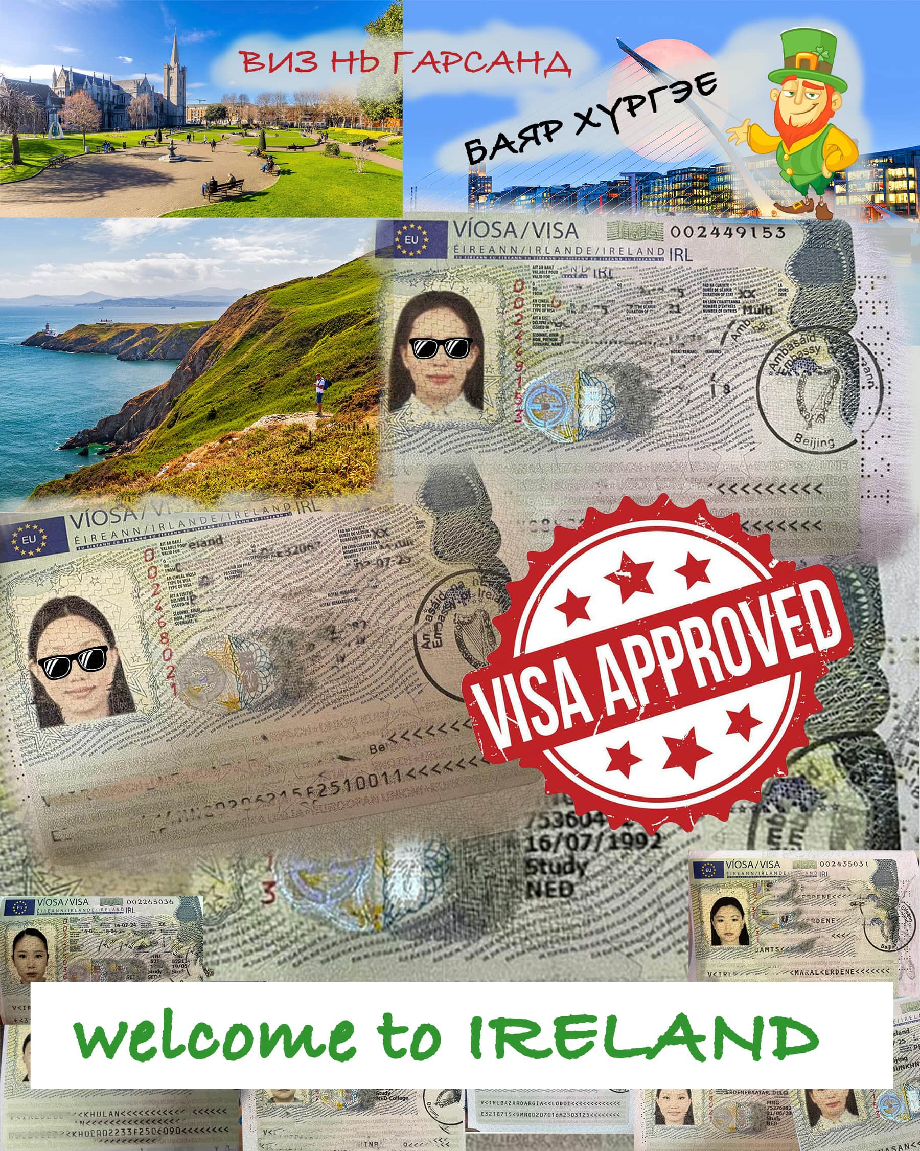 Ирландын 10 орчим сургууль уруу виз зуучлалын үйлчилгээ үзүүлж, визний бичиг баримт бүрдүүлэлт хийж, зөвлөгөө өгч байна.